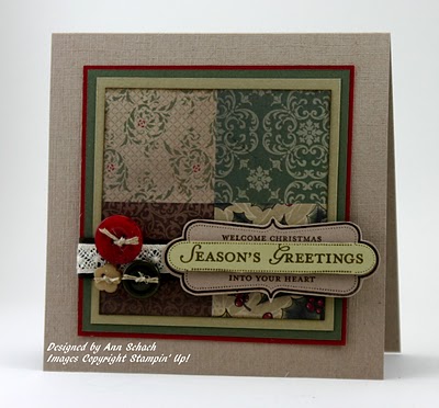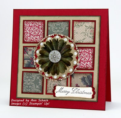 With Pearls, Glass Glitter and an Antique Brad, the medallion in the middle of this card is vintage elegance. Once again, I can’t wait to see what new Christmas paper Stampin’ Up! has in store for us next holiday season. Deck the Halls Designer Series Paper will be a tough act to follow!