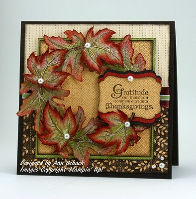 This fall I was able to take a class from Michelle Zindorf. Although I will never be the master of brayering that Michelle is, I did like the way this card turned out. However, I would love to switch out my ribbon for something scrunchy!