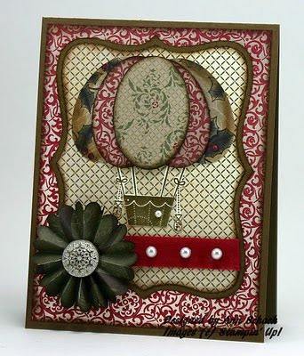 And speaking of Deck the Halls, a wonderful sampling of the various patterns can be found in this balloon card! I can hardly wait to recreate this card with the beautiful Springtime Vintage Designer Series Paper from the Occasions Mini catalog.
