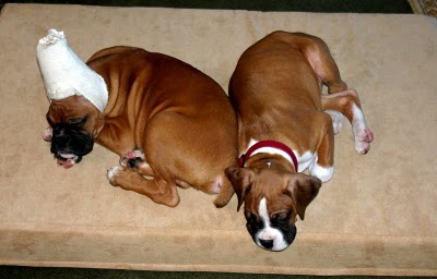 These pups are HUGE! And so stoic looking. They look just like to boxers on the UK Channel where the champs are shown! They are gorgeous and I am SO glad the healing has occurred that everyone hoped for. Best of luck for your puppies entry into “doggie challenges!!”