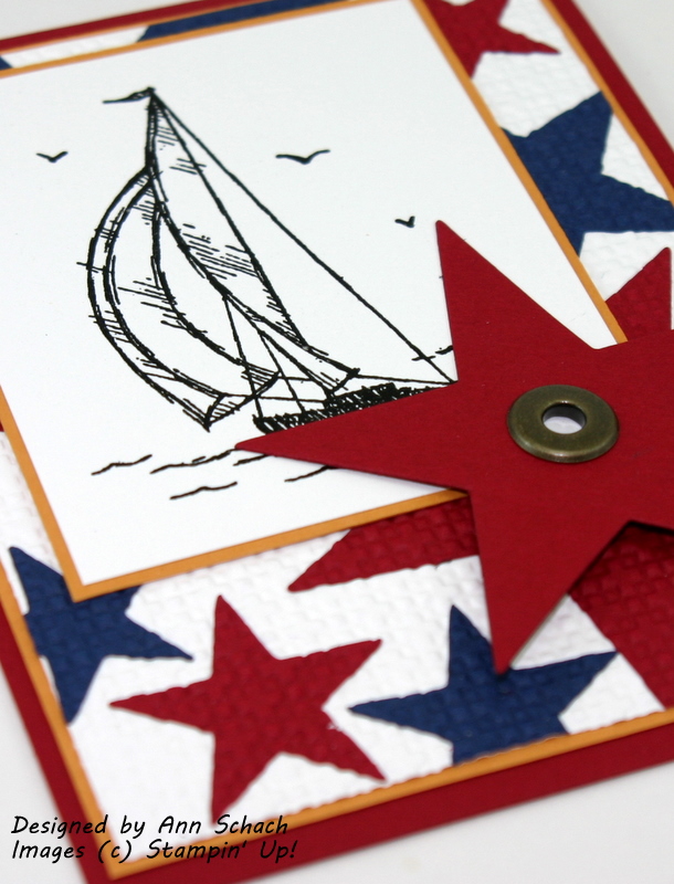 What a fabulous card, Ann! I love the sailboat with the patriotic theme, and the embedded stars technique is so wonderfully showcased on your card.